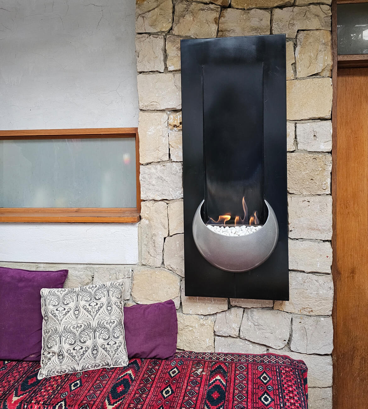 Fire Art pensando en la ancestralidad ofrece su Fuego Precolombino, chimenea de pared inspirada en la nariguera tairona. Tiene un contraste de colores como el negro con plateado dandole u toque de modernidad a la pieza. Se caracteriza por potencializar el calor a travez de la irradiacion del metal y su forma. Elaborada en lamina cal 12 con pintura de alta temperatura. Incluye quemador de bioetanol de 30 cm Capaciadad de 1 litros . Incluye piedras decorativas blancas.